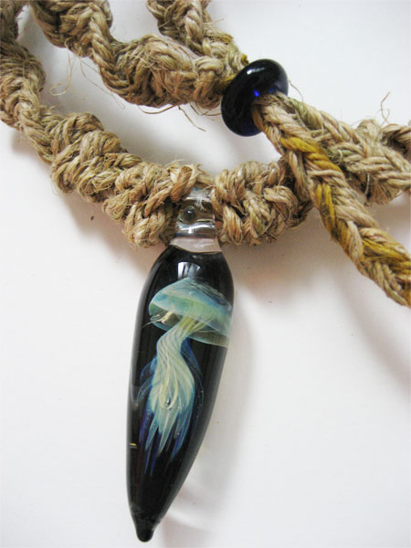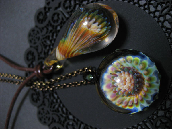 酸素バーナーを使用して、ボロシリケイトガラス(硼珪酸ガラス)を加工しています。 耐熱・硬質のガラスなので、比較的強度が高く、また透明感が高いガラスです。 ガラスの中に入っている、ラインや花のように見える模様も、全てガラスです。